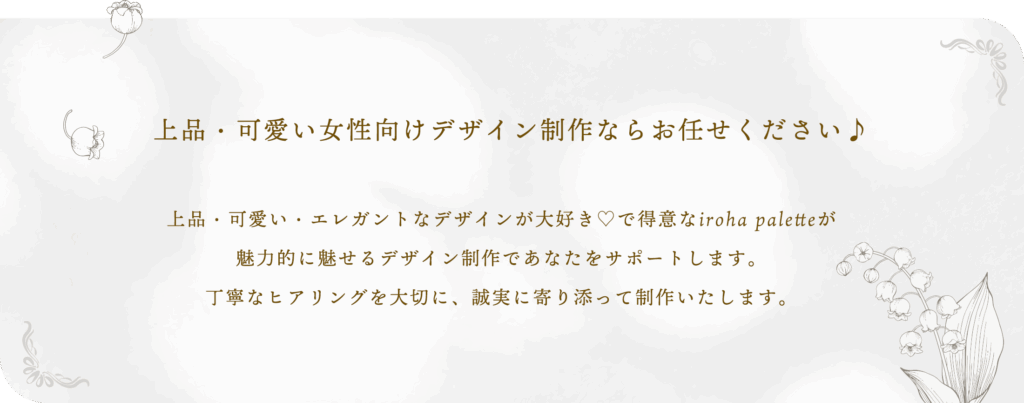 全国のクライアント様(個人事業主様や中小企業様)を対象とした女性・お子様向けのデザイン制作を行なっております。